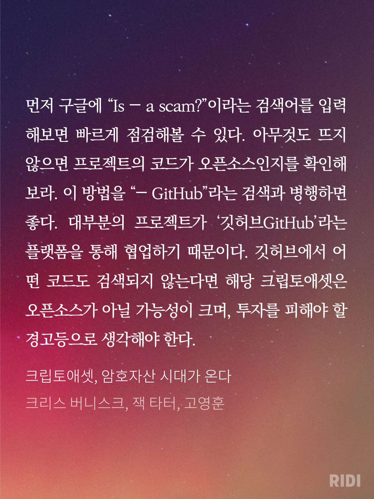 투자를 피해야 할 크립토애셋 구별법influencer07 (57)in #sct • 7 years ago 스팀잇 말고는 코인투자에 큰 관심이 없지만 책을 보다 투자와 관련 된 주의사항을 알려준 내용이 있어 공유해봅니다. 개발자자분들은 아마 쉽게 알아들실 듯 한데 전 정확히는 모르겠네요. #sct-kr #sct-invest #zzan #jjm #book #liv #palnet