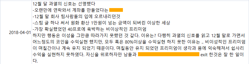 개인적으로 엑셀 시트에서 코인투자에 대해서도 이러한 것을 기록하고 있다.