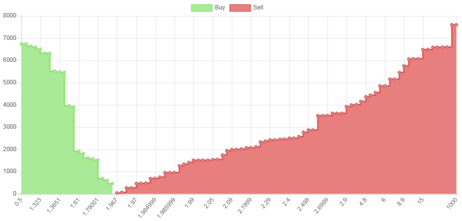글 작성 시점인 현재, 매수 상한가인 1.8 STEEM에 7.455개의 매수물량이, 매도 하한가인 1.967 STEEM에 40개의 매도물량이 있습니다. SCT는 현재 스팀엔진에서 거래량 6위이며, 어제와 유사한 가격을 형성하고 있습니다.