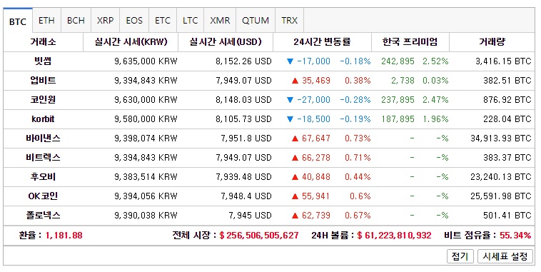 어제랑 별반 차이가 없네요. 지금 위 시세는 실시간 갱신이 안이루어져서 가격대가 낮게 책정이 되었는데 비트대장이 960만선 이상이네요.
