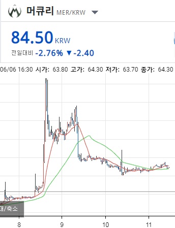 아직 비트대장은 파란불이지만 요놈들은 달려주는 군요. 어제 신나게 달렸던 알트 코인들은 오늘은 몇프로씩 빠져 있는 상태이고 계속 조금씩 몇일간 하락하겠죠. 비트 대장이 천만 넘지 않는 이상은요. 머큐리도 신나게 달리다가 몇인간 계속 하락세네요.