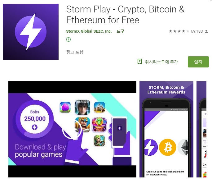 최근에 스톰코인이 채굴하고 싶어서 스톰코인을 채굴하는 어플을 설치 했네요. storm play이라는 어플 안에서 여러개의 게임이 있는데 각 게임 마다 특정 조건이 도달 하는 미션이 있습니다. 그걸 도달하면 대량의 Bolts를 주는데 이Bolts로 스톰코인, 비트코인, 이더리움코인으로 전환하여 보상이 지급 됩니다.