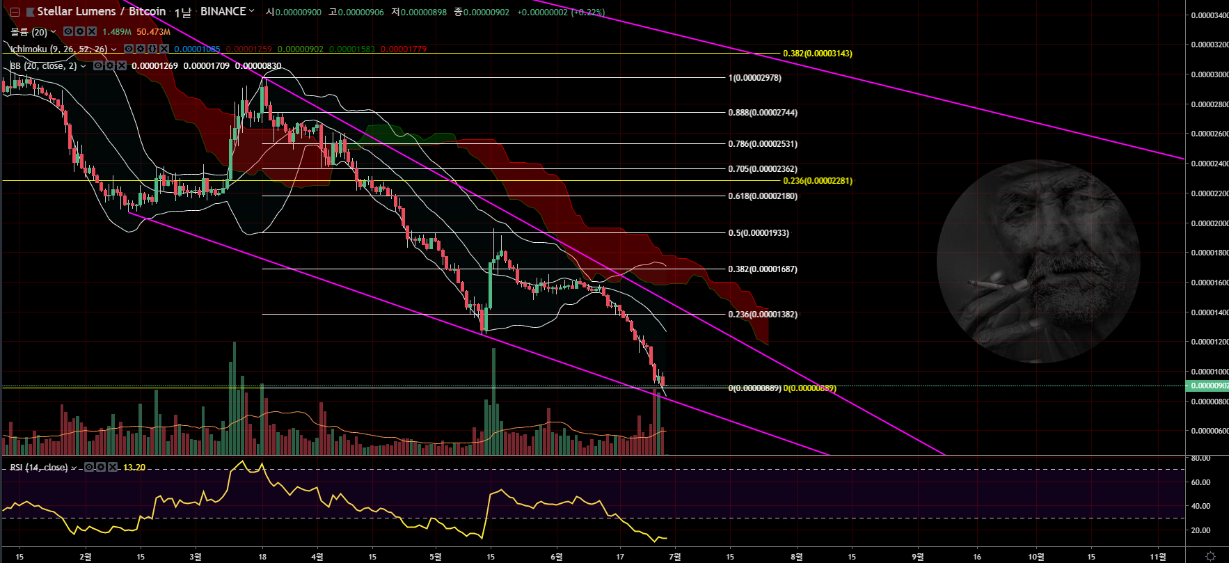 바이낸스 차트 기준 역대 최저가와는157 사토시 (21.45%)밖에 차이가 나지 않고 있습니다.