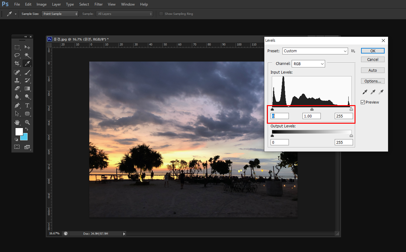 이미지의 밝기를 조절하는 방법은 여러가지가 있지만 오늘은 levels를 보여드리겠습니다.