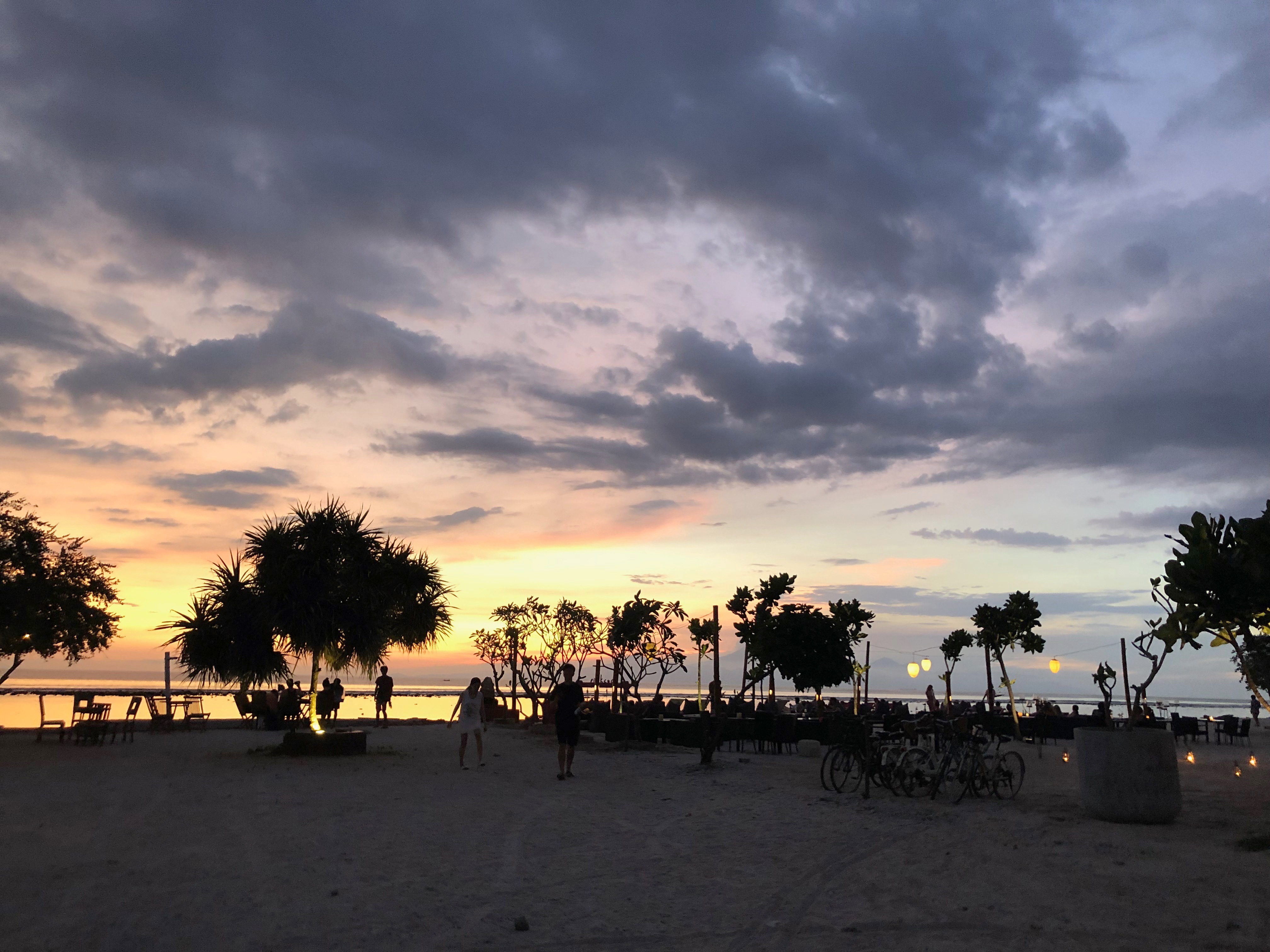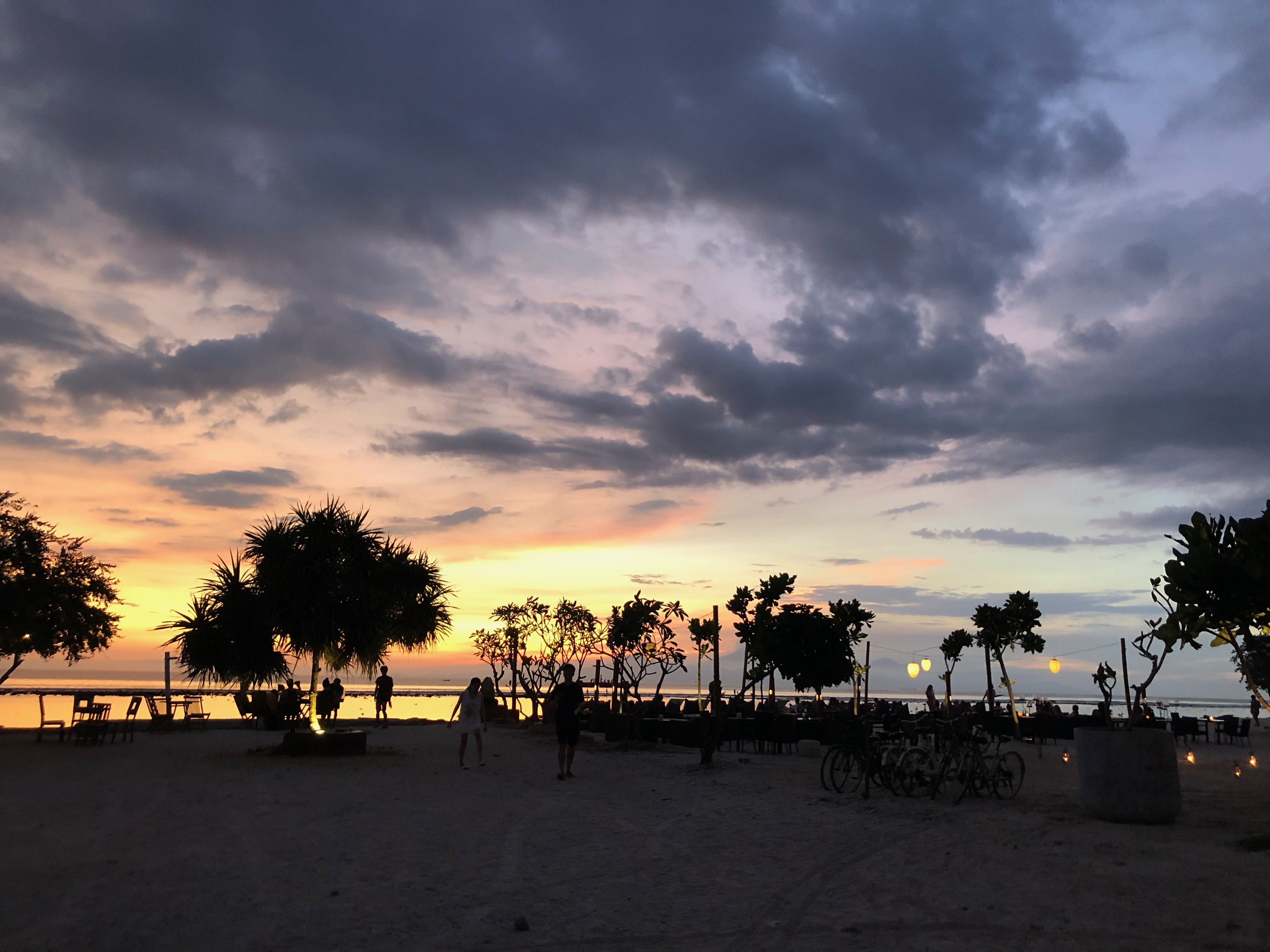 모래사장에 서있는 사람이나 여러대가 같이 놓인 자전거 등을 실루엣으로만 확인이 가능할 정도로 어두워 보이네요.