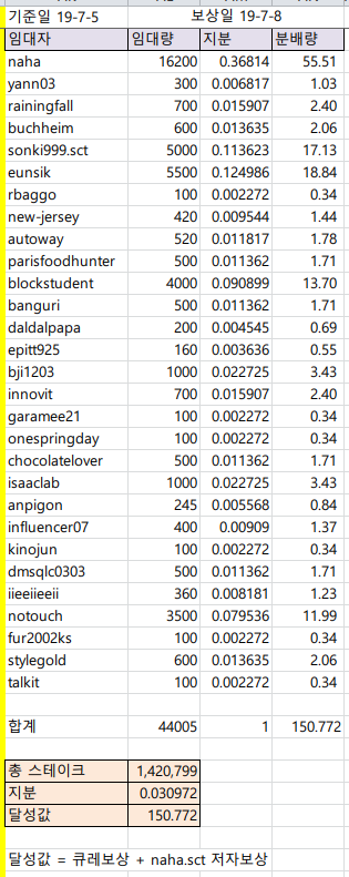 그러므로, 7월30일까지 임대된 수량만 적용할 수밖에 없음도 미리 알려드립니다.