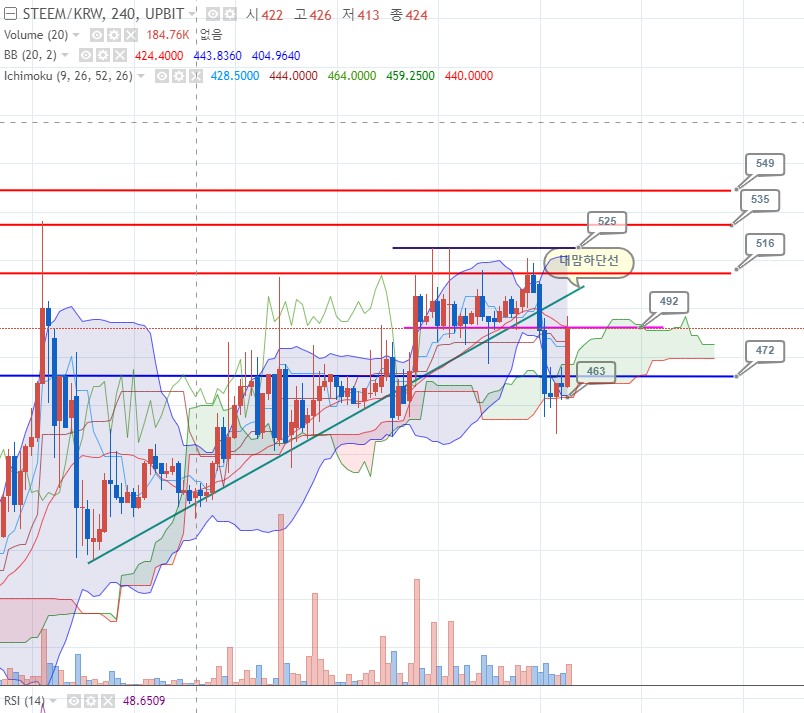 /sct/ 2019.05.31 pm 10 / upbit / Steem 전쟁중!nasuyoung (51)in #sct • 7 years ago 내 멋대로 작도 후 내멋대로 생각하는 왕초보 차트 공부. 봐도 봐도 알수없는 차트. 오늘도 도전! 스팀! 지금은 전쟁중... 4시간봉 오전 ,오후내내 남들보다 늦게 살짝 오르고, 남들보다 빠르게 하락 하단 구름대 터치 후 492원대에서 전쟁 중 방금 포스팅 작성 중 489원으로 다시 후퇴 중 492원 전쟁에서 승리 후 512원까지 계속 상승해라 . #steem #sct-tooza #jjm