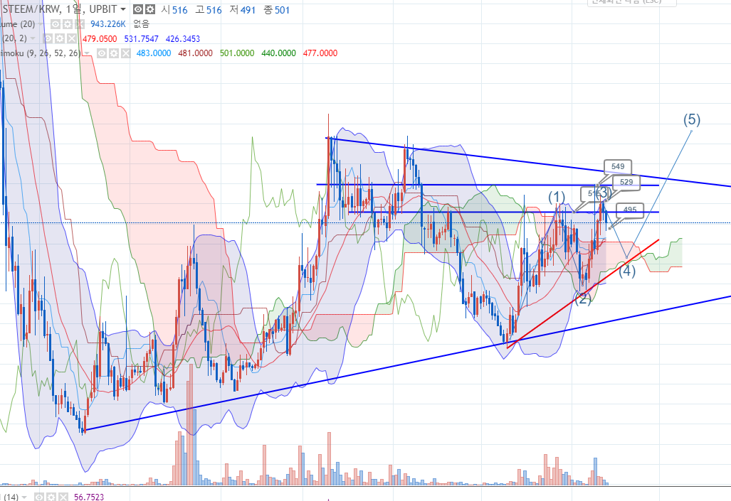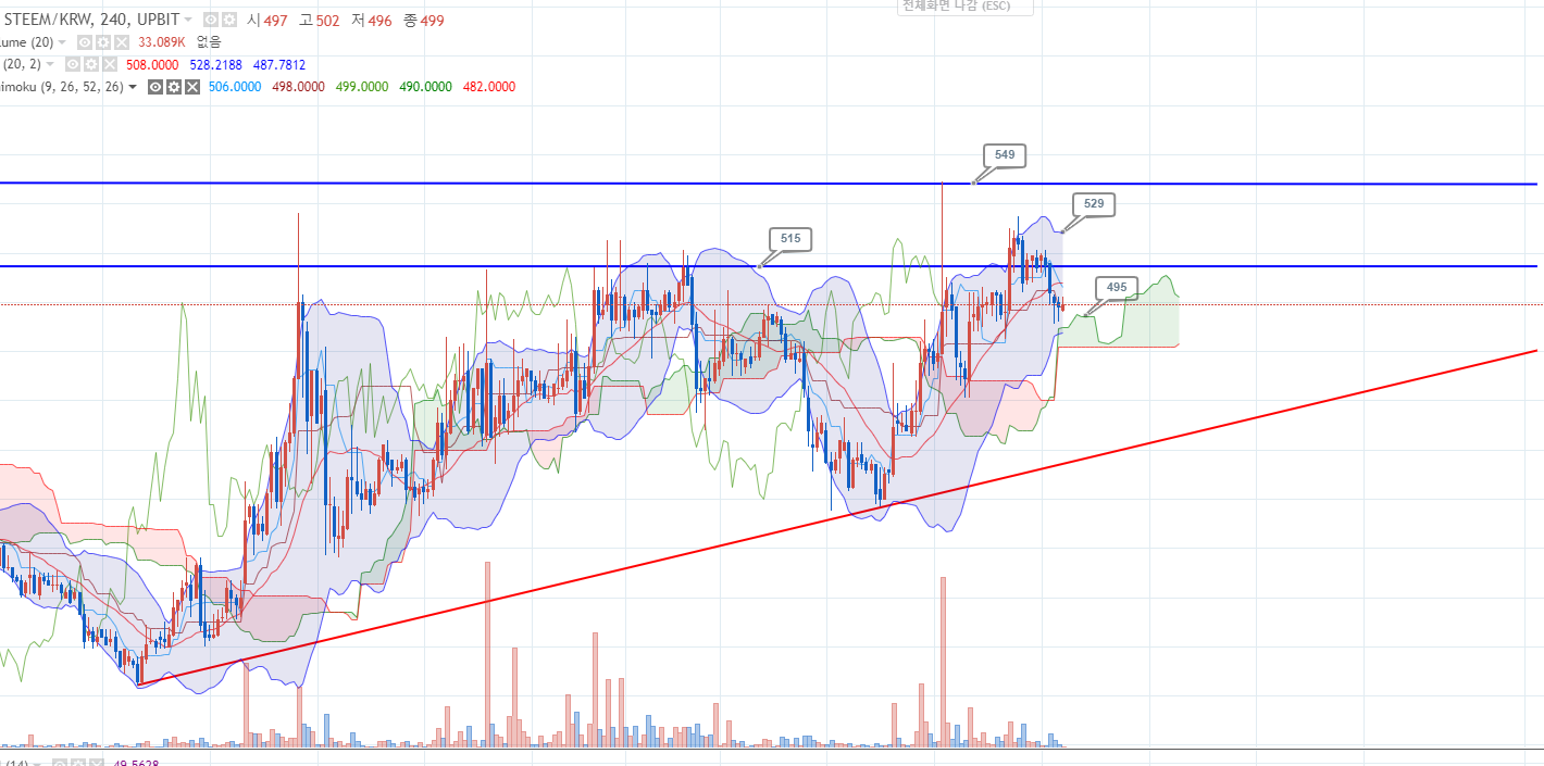 구름대 상단을 지지하고 다시 올라갈것인지 아님 쪼르륵 내려갈지는 비트코인의 상승 여부에 따라 달라지겠지만