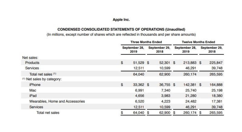 애플은 올해 3분기(애플 회계연도 2019년 4분기) 매출액이 전년 동기 대비 2% 늘어난 640억 달러(약 74조 2800억 원)를 기록했다고 전했다. 시장에서 예상됐던 629억 달러(약 73조 원)를 넘어선 수준이다. 주당 순이익도 3.03달러로 지난해 같은 기간보다 4% 늘었다. 시장 전망치 2.84달러보다 높다.