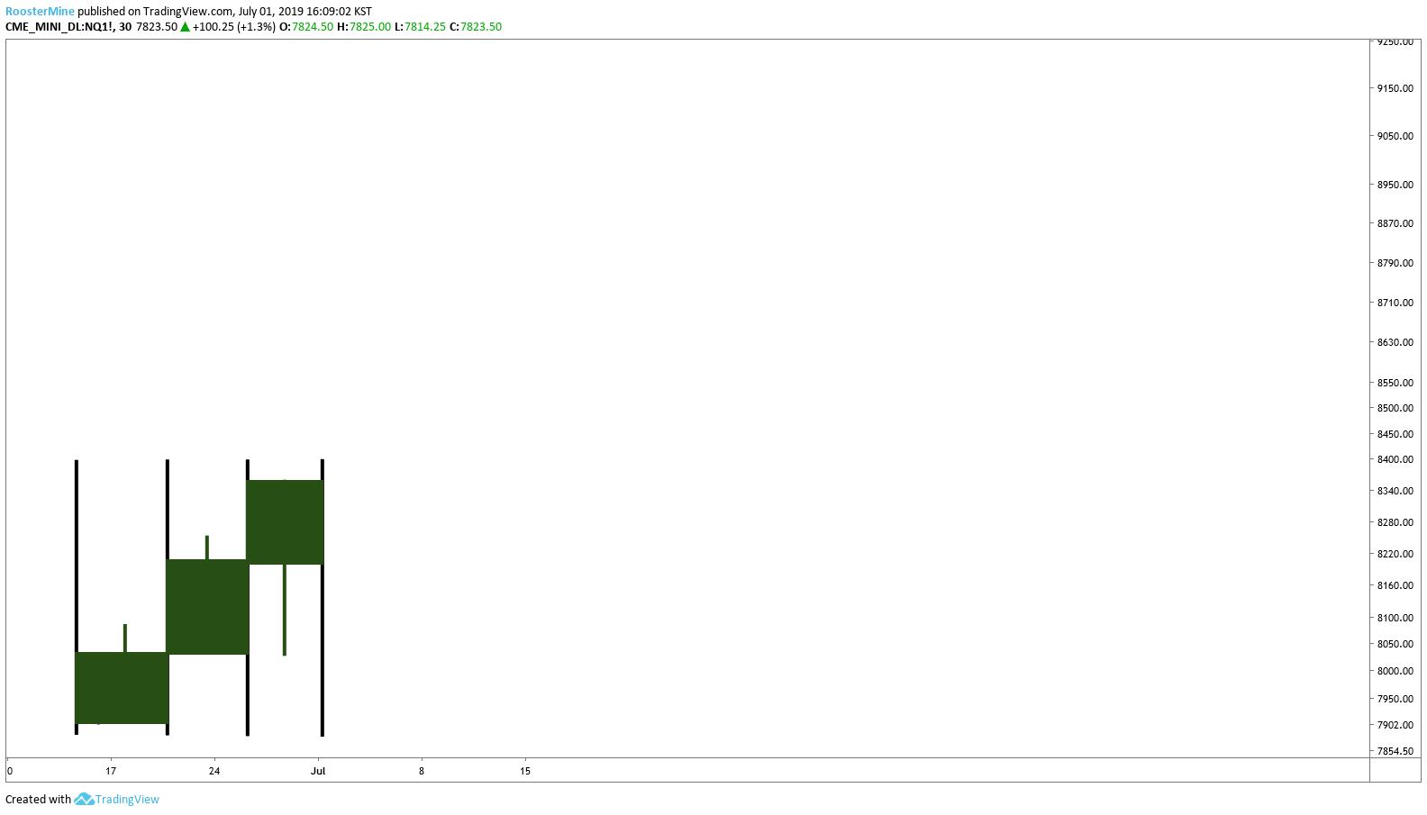 먼저 몸통에 해당하는 부분인 종가와 시가를 연결하는 "박스" 를 그려볼 것 입니다. 단순하게 각 구간에 시작한 가격들을 (종가/시가) 를 박스로 만들어주면됩니다.