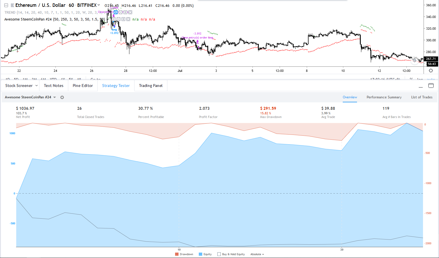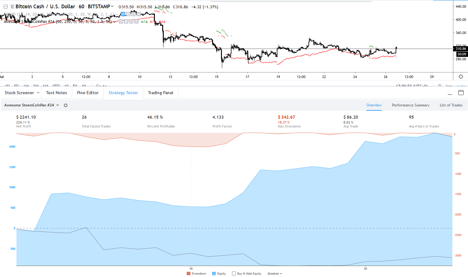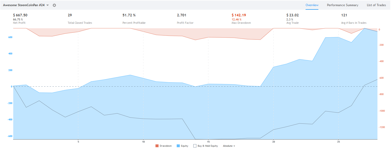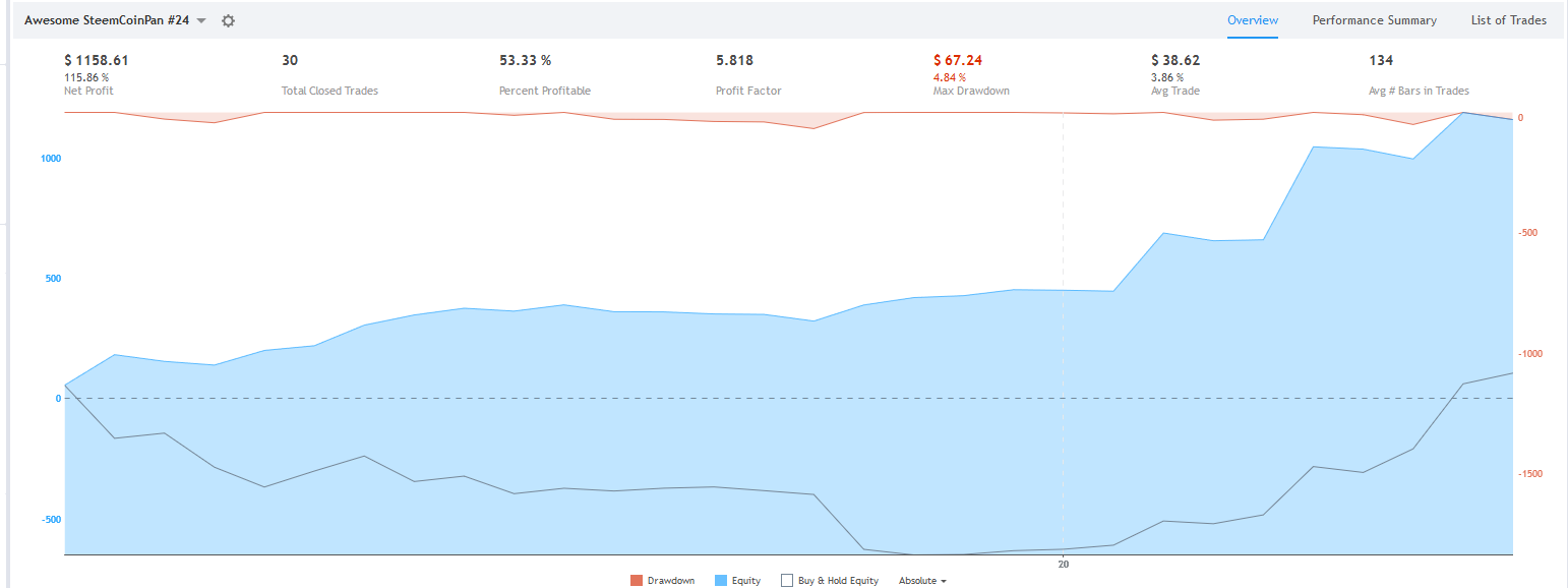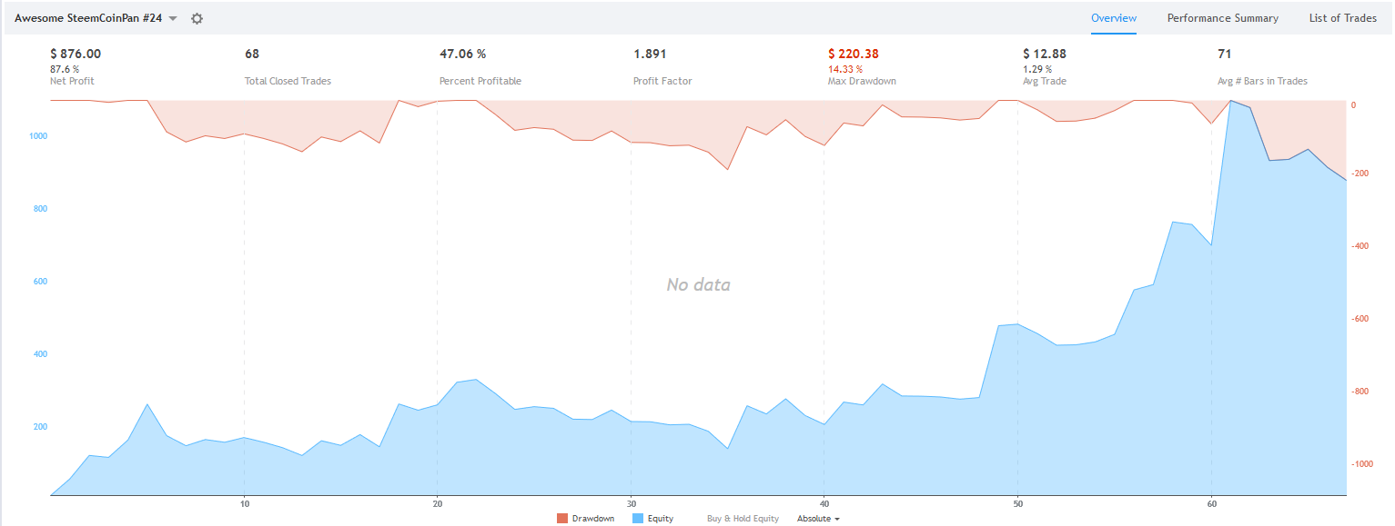 일봉이라도 올려드리고 싶으나, 사실 통계에 기반하여 매매를 하기 때문에 일봉 상에서 정상적인 전략이라면 총 매매 횟수가 비트 탄생일 부터 30회 정도 밖에 나오지 않을거에요... 즉, 통계적 이점이 있는지 확실하게 증명이 불가능 합니다.