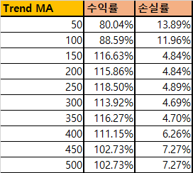 가장 수익률이 극대화 된 지점은 250 주기를 사용했을 때군요!