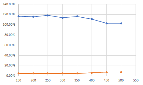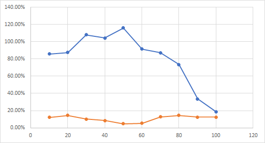 주기가 늘어날 수록 변환되는 구간이 제한되기에 수익률이 급격하게 줄어드는 현상을 보실 수 있습니다.