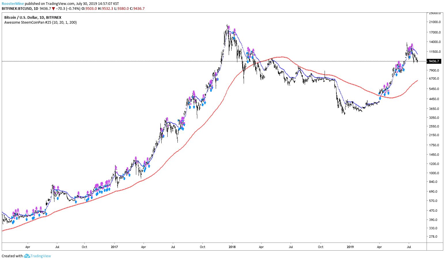 초록색 선 느낌으로, 17년도 불장 및 현재 조정을 주는 경우에 어느정도 닿아 지금 발생하는 매수 시그널에 대해서는 필터링 했으면 좋겠습니다. 대충 100 일 정도로 바꿔주면 될 것 같습니다. (느낌상 ㅋㅋ)