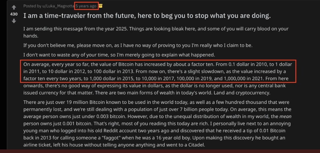 麥明詩都講Bitcoin?Reddit未來人都市傳說satoshihk (50)in #sct • 7 years ago (edited) 十優港姐麥明詩都有係節目《後生仔傾下謁》提及到Bitcoin,估唔到麥明詩對Bitcoin都有研究。到底佢講左啲咩?大家有興趣既就睇下條片啦。 係節目度,麥明詩仲提過一個Reddit既都市傳說,係一個聲稱自己係黎自2025年既未來人寫既,仲預言Bitcoin將會升至一百萬美金! 呢個Post係2013年出既,實在非常神秘。佢仲話係未來用美金黎計價已經無任何意義,大家又點睇呢? #palnet #sct-cn #bitcoin #cn