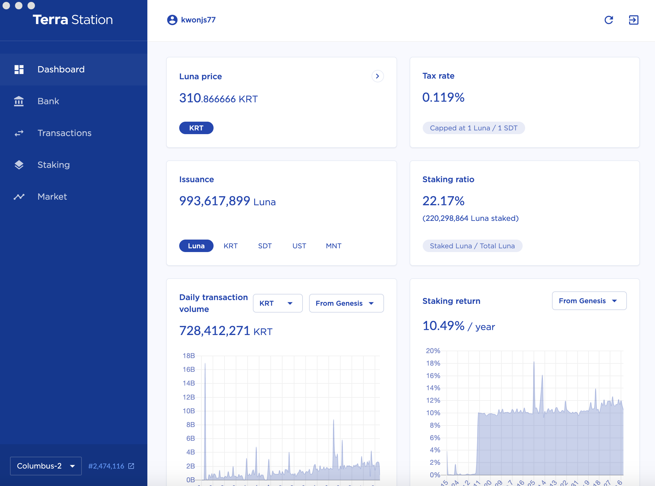 루나 스테이킹을 위해서는 윈도우즈 혹은 MAC 기반의 PC프로그램(Terra Station)을 설치하여야 합니다.