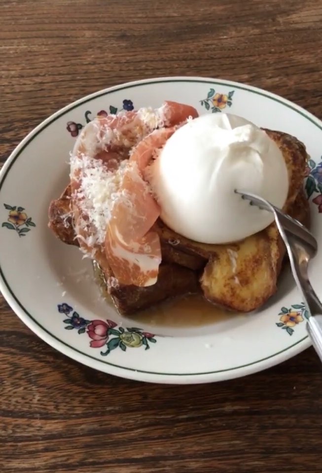 아래 사진은 우리 가족 최애 카페 메뉴 중 하나인 프렌치 토스트 위에 올라가 있는 부라타 입니다. 그 옆에는 프로슈토. 모짜렐라의 고소함과 크림의 느끼함이 공존하기에 이렇게 단짠단짠 (프렌치 토스므 + 프로슈토) 메뉴에 적격입니다.