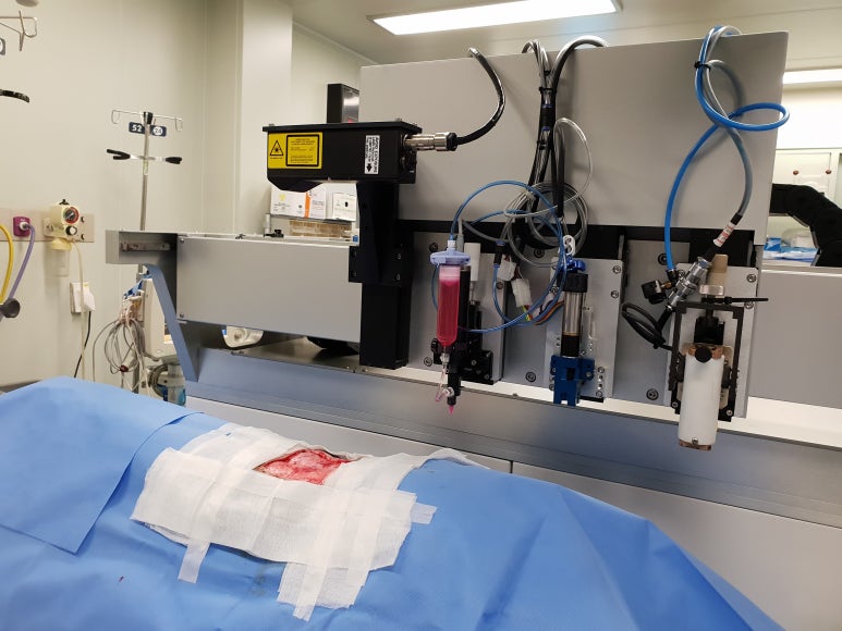 이 3D 프린터는 피부 세포와 콜라겐, 상처 회복에 기여하는 섬유소(피브린)로 구성된 바이오 잉크를 활용합니다. 상처 위에 바이오 잉크를 뿌리면 수분 안에 고정된다고 합니다. 상처 부위만 인공 피부를 도포하니 환자 맞춤형 치료가 가능합니다. 동물을 대상으로 한 임상실험이 끝나면 상용화가 임박해질 것으로 보입니다.