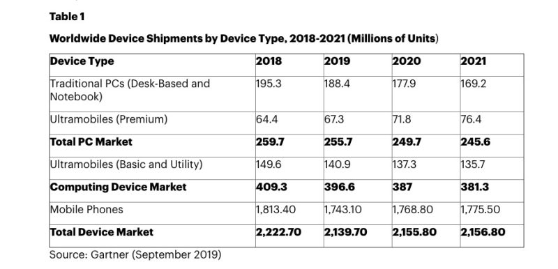 시장조사업체 가트너는 올해 글로벌 전자기기 출하량 전망치를 공개했다. 스마트폰 출하량은 전년 대비 3.2% 줄어들 것으로 나타났다. 스마트폰과 피처폰을 합한 전체 휴대폰 출하량은 올해 17억 4310만 대를 출하할 것으로 예상돼 지난해 18억 1340만 대 보다 4.4% 감소할 예정이다.
