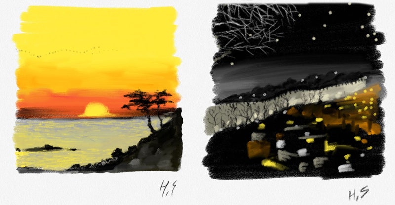 그림판의 경우 켄트지와 같은 재질로 돼 있어 시각적으로 이질감을 줄이는 효과가 있습니다. 다만 PC로 그림 파일을 가져왔을 때 흰 배경에 추가 수정이나 후보정 작업을 하는 데는 다소 방해가 되기도 합니다.(예컨대 '누끼따기'와 같은 작업은 불편하다고 합니다.)