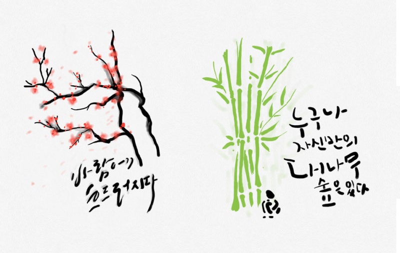 캘리그라피와 그림. 서예붓 활용(그림:백형선 에디터)