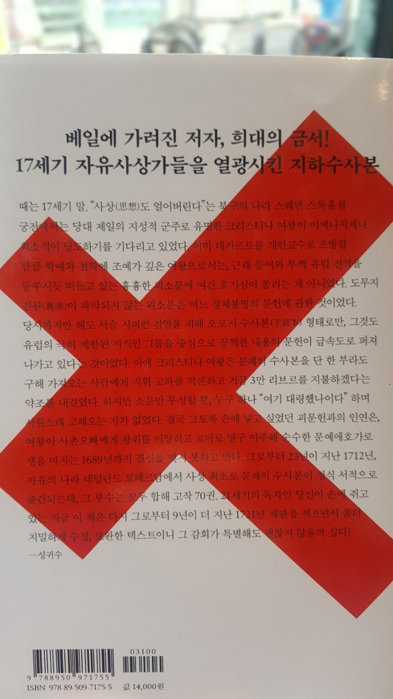 옮긴이의 해설문에 나오는 내용을 간략하게 옮겨 보았다. 스웨덴 여왕 크리스티나가 죽기 전까지 그렇게 애타게 찾고 있던 책이다.