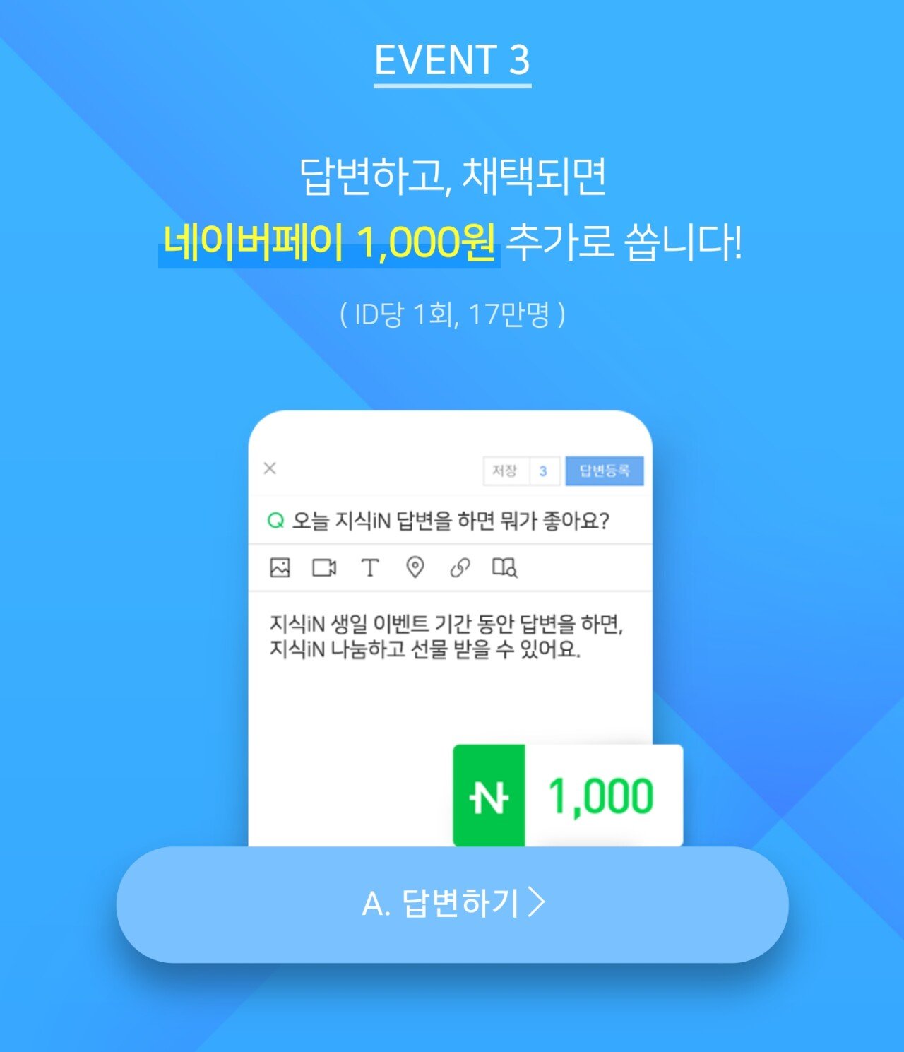 선착순 17만명 네이버 지식인 질문 시 네이버페이포인트 1000원 받을 수 있음