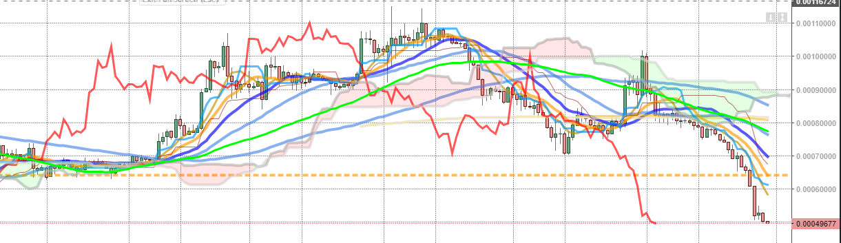 EOS 일봉차트 는 겨우 지지받고 있다triptalk (56)in #sct • 7 years ago 이오스가 89일선에서 간신히 지지받고 있다. 비트코인 대비 차트는 완전히 망가져있다. 알트코인이 너무 취약한 상태다 이오스 뿐만이 아니라 대체로 비슷한 모습이다. 앞으로는 비트코인만 살아남는 것일까