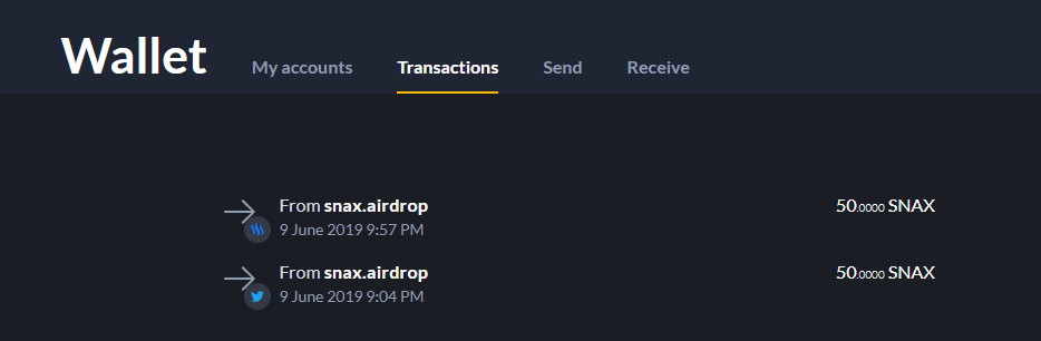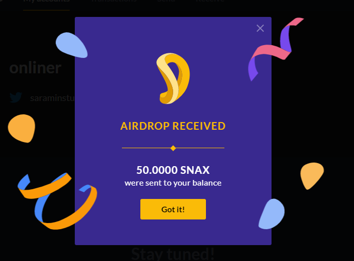 지갑을 생성하고 트위터 계정을 연결하면 50 snax 를 받습니다.
