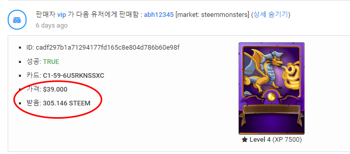 내놓았던 카드가 6일전에 팔렸는데, 카드당 4달러선에 사서 8달러정도에 매도가 되었습니다. 가끔 치킨 하나 값 벌어서 스몬하는 재미를 느끼곤 합니다. 스팀 가격이 워낙 많이 하락해서 스몬 카드들의 환산 스팀양이 상당할 듯 합니다. 스팀도 내년이면 좋은 날이 오면 좋겠습니다...