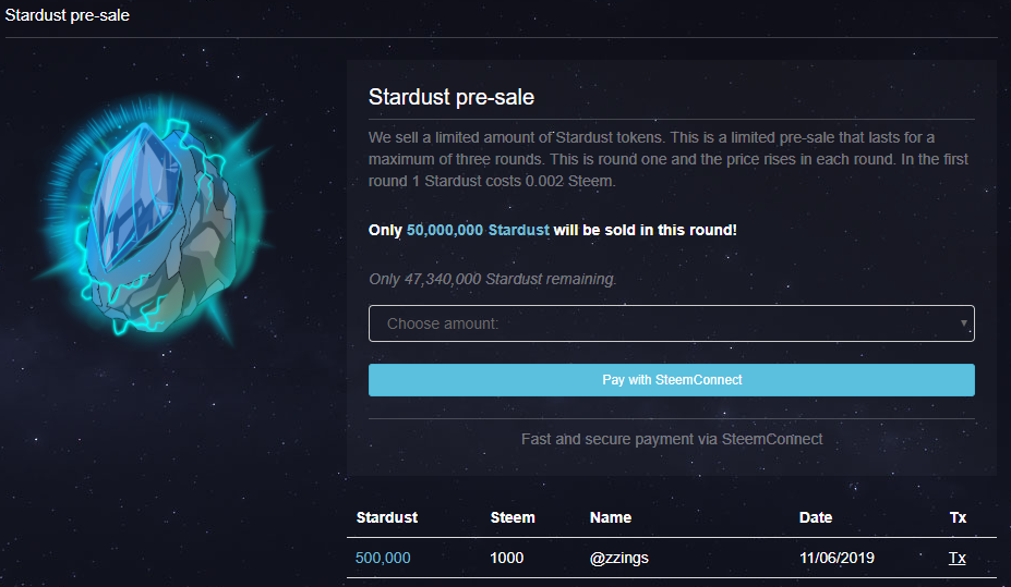 사실,제 입장에서 현재는 stardust가 많이 필요하지는 않지만, 6개월간 재밌게 했고, 앞으로도 재밌게 할것이기 때문에, 개발진들에게 조금이나마 응원하고자 하는 마음에서 프리세일에 참가했습니다.
