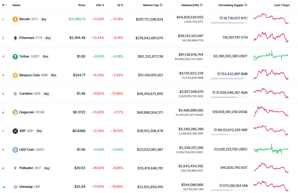 Based on data from Investing at 09:00 WIB, Bitcoin price fell 7.95% to the level of US$ 33,778.20/coin or equivalent to, Ethereum fell 6.66% to US$ 2,606.41/coin, Litecoin fell 9.58% to US$ 163.10/coin.