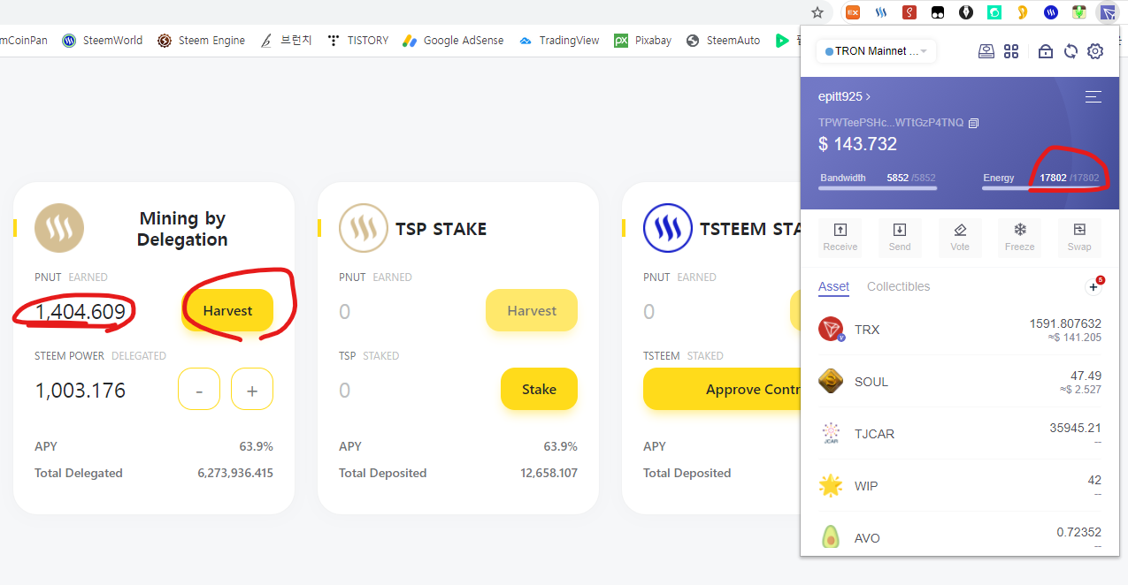 어제 급등하는 시기에 제가 가지고 있던 스달은 거의 매도를 하였습니다. 일부는 스팀을 매수 해서 오늘 스파업 했습니다. 또 일부는 트론으로 바꾸어서 토론 링크에서 보팅 요청을 위해서 PNUT 으로 스왑 하였습니다. PNUT 으로 보팅 요청 하려고 정말 몸빵 제대로 해 보았습니다. 이제 트론 링크를 제대로 알게 되었습니다. 제대로 배우기 위해서는 역시나 몸빵이 최고 같습니다.