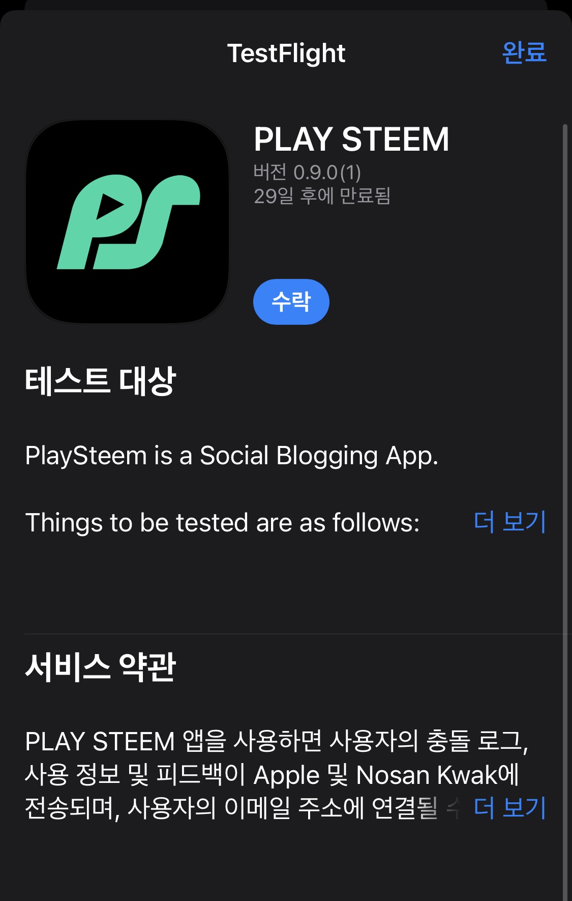 안드로이드는 어플 파일을 다운받아서도 쓰실수 있지만 아이폰은 아직 테스트 버전입니다. 애플이 잘못했져ㅠㅠ