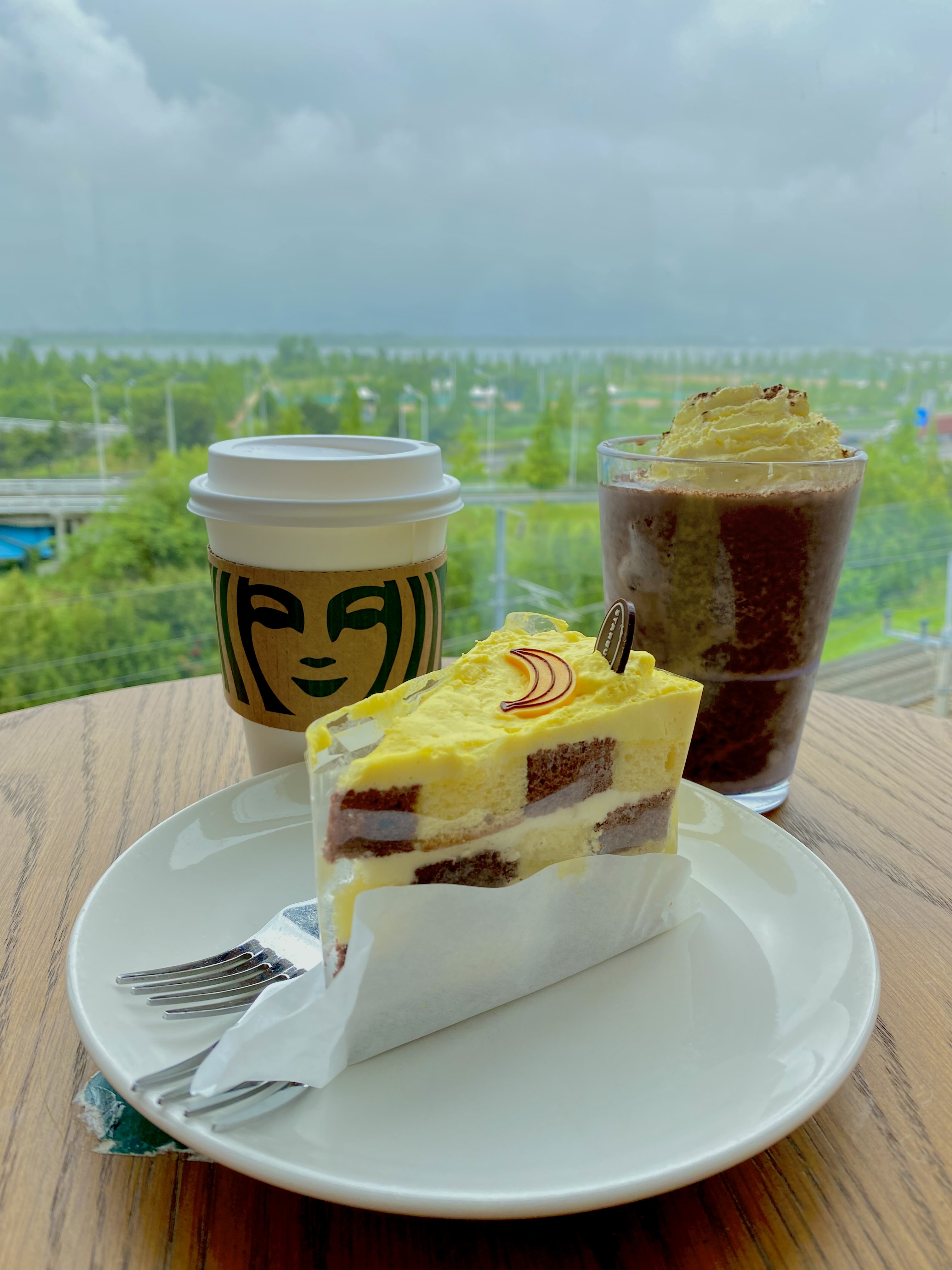바나나크림다크초코 블렌디드와 돌체라떼 그리고 바나나 체커스 케이크를 주문했어요. ☕️🍰🥤