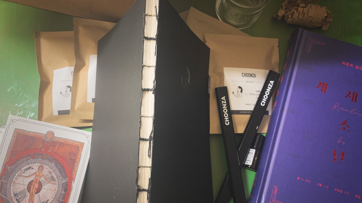모든 선물이 마음에 들지만 그 중 눈에 띄는 (아 놔~ 다 좋아요.) 무지 노트, 쫙쫙 펼쳐지게 제본하여서 필기할 때도 편하고, 노트 색깔도 느낌있는 검정검정이라 마음에 들어요.