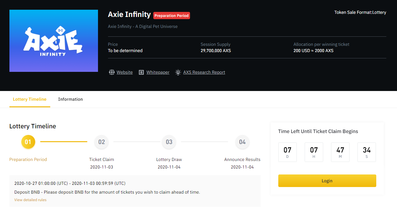 - 런치패드 할당량 : 29,700,000 AXS (총 공급량의 11%)
