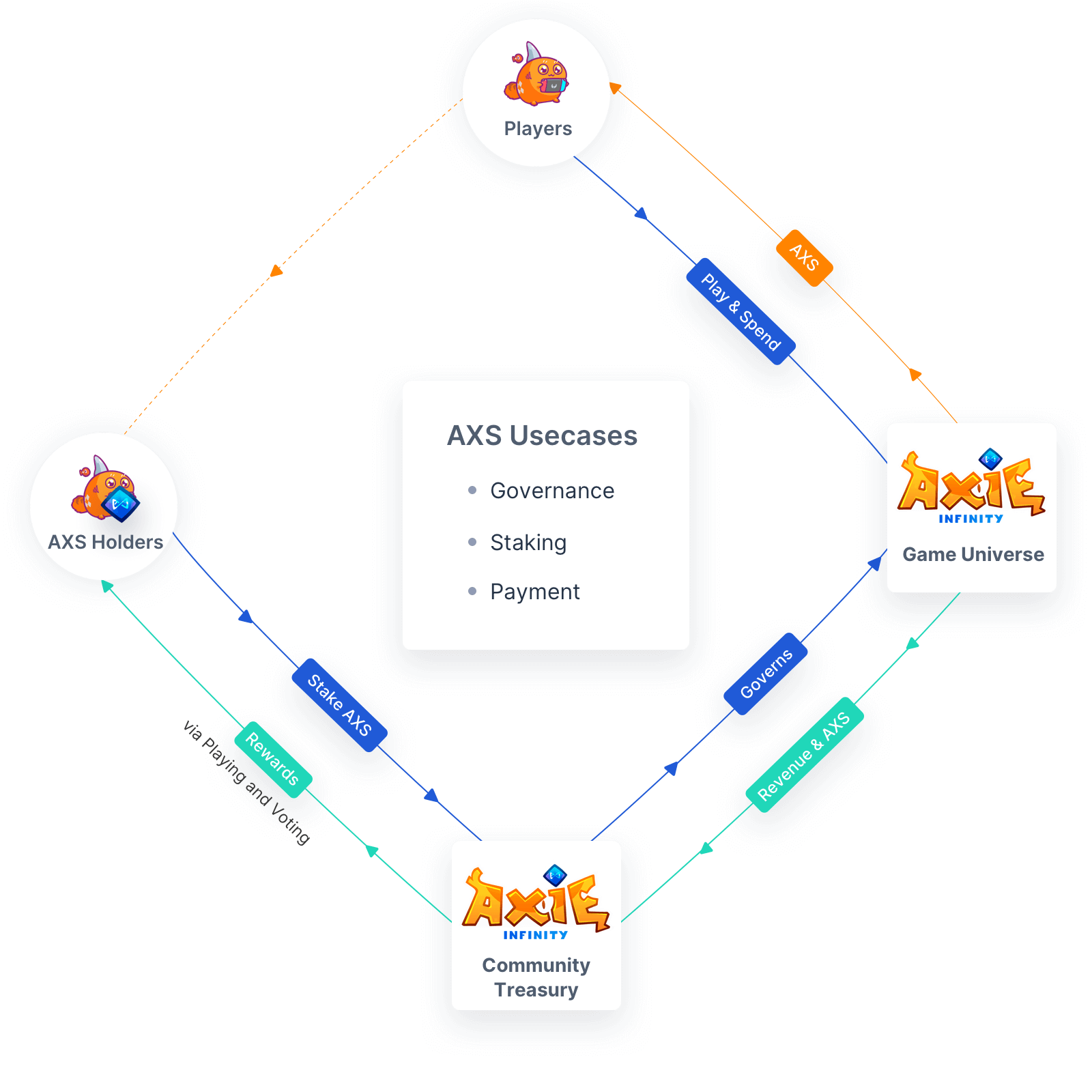AXS토큰은 Axie Infinity 생태계 내에서 위와 같이 거버넌스, 스테이킹, 결제 등에 사용되는데, 스테이킹 기능은 2021년 초부터 지원이 될 예정이라고 합니다.