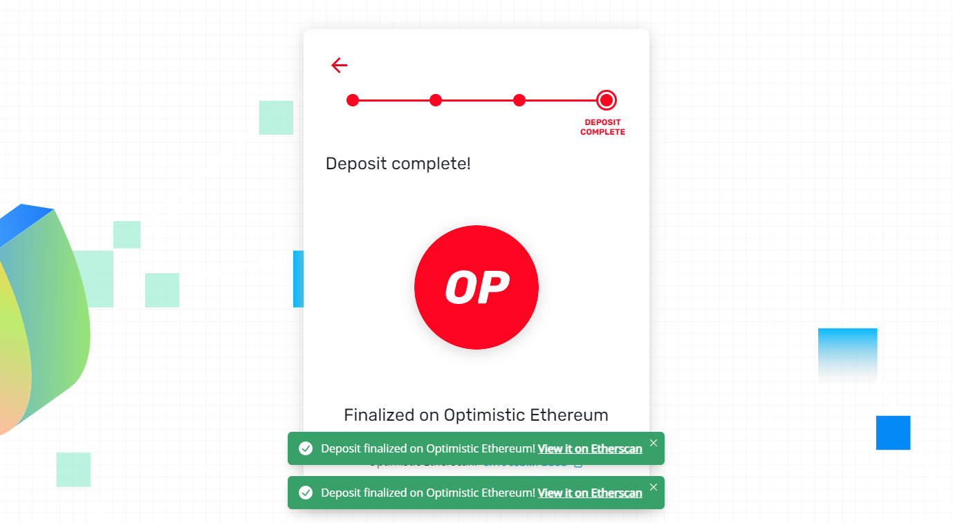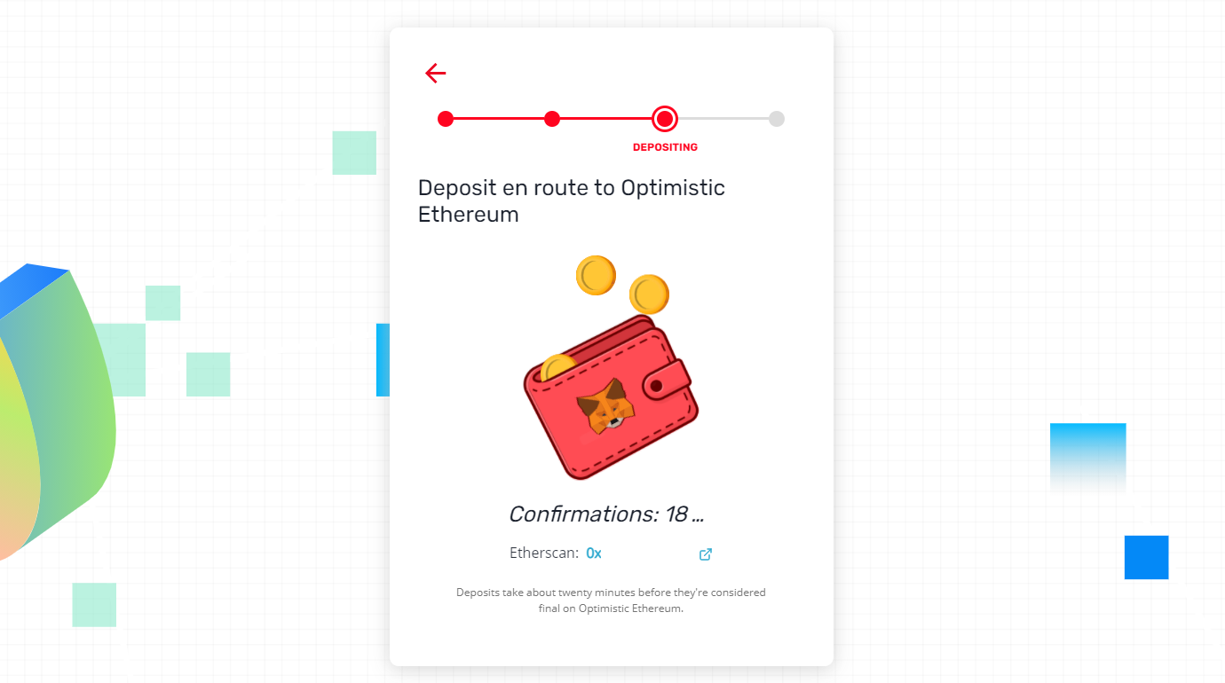 옵티미즘 이더리움에 디파짓이 완료될 때까지는 조금 시간이 걸리는 편이라 혹시라도 옵티미즘을 사용하고자 하는 경우에는 충분한 시간을 두고 이더리움 수수료가 저렴한 타이밍에 미리 넣어두는 것을 추천드립니다.