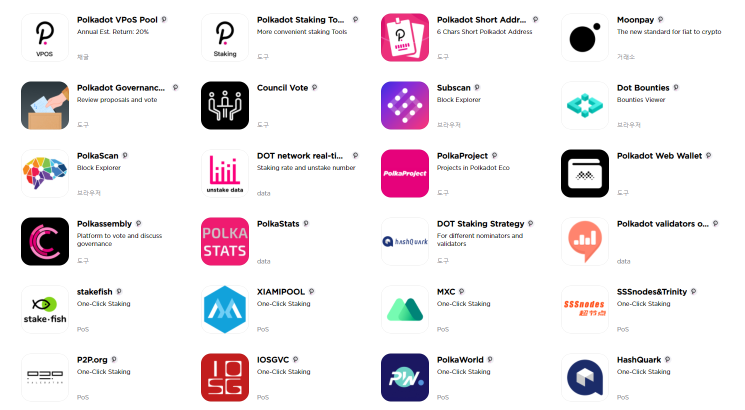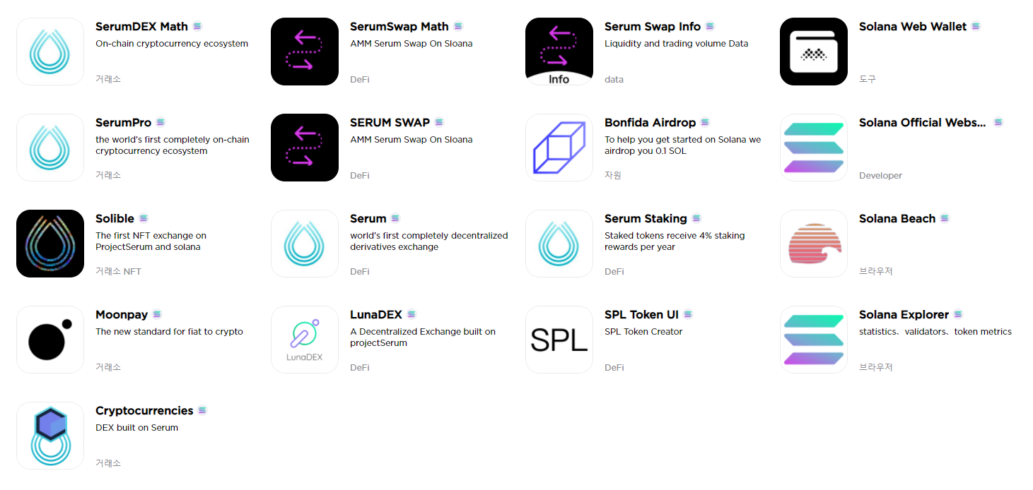 일반적으로 특정 블록체인의 디앱만 리스팅 되어 있거나, 이더리움/이오스/트론 정도에 그치는 디앱 관련 포털사이트와는 달리 새롭게 출시된 폴카닷, 솔라나, 니어, 쿠사마, 코스모스 등 다양한 체인들의 정보가 한데 모아져있다보니 꽤나 유용하고 신선한 정보들이 많습니다.
