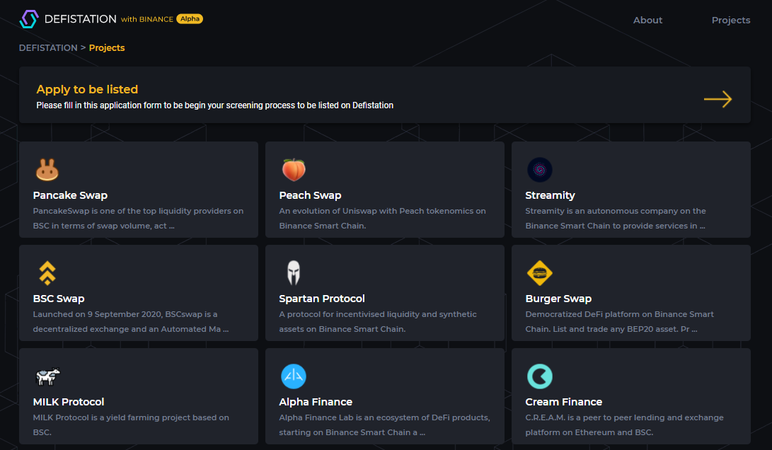 [바이낸스 스마트 체인] BSC기반 DeFi 프로젝트 정보 찾기 : Mathdapp Store