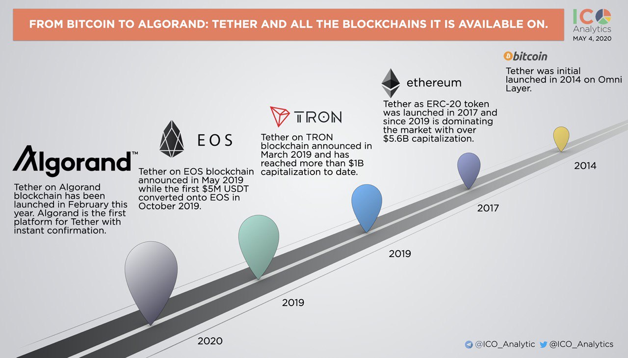 현재 대부분의 USDT홀더들이 거래소간 이동 시에 OMNI, 이더리움, 트론을 이용하고 있다보니 잘 인지하고 있지 못하지만, 테더는 2019년에는 EOS, 2020년에는 알고랜드에서도 지원이 되기 시작했습니다.