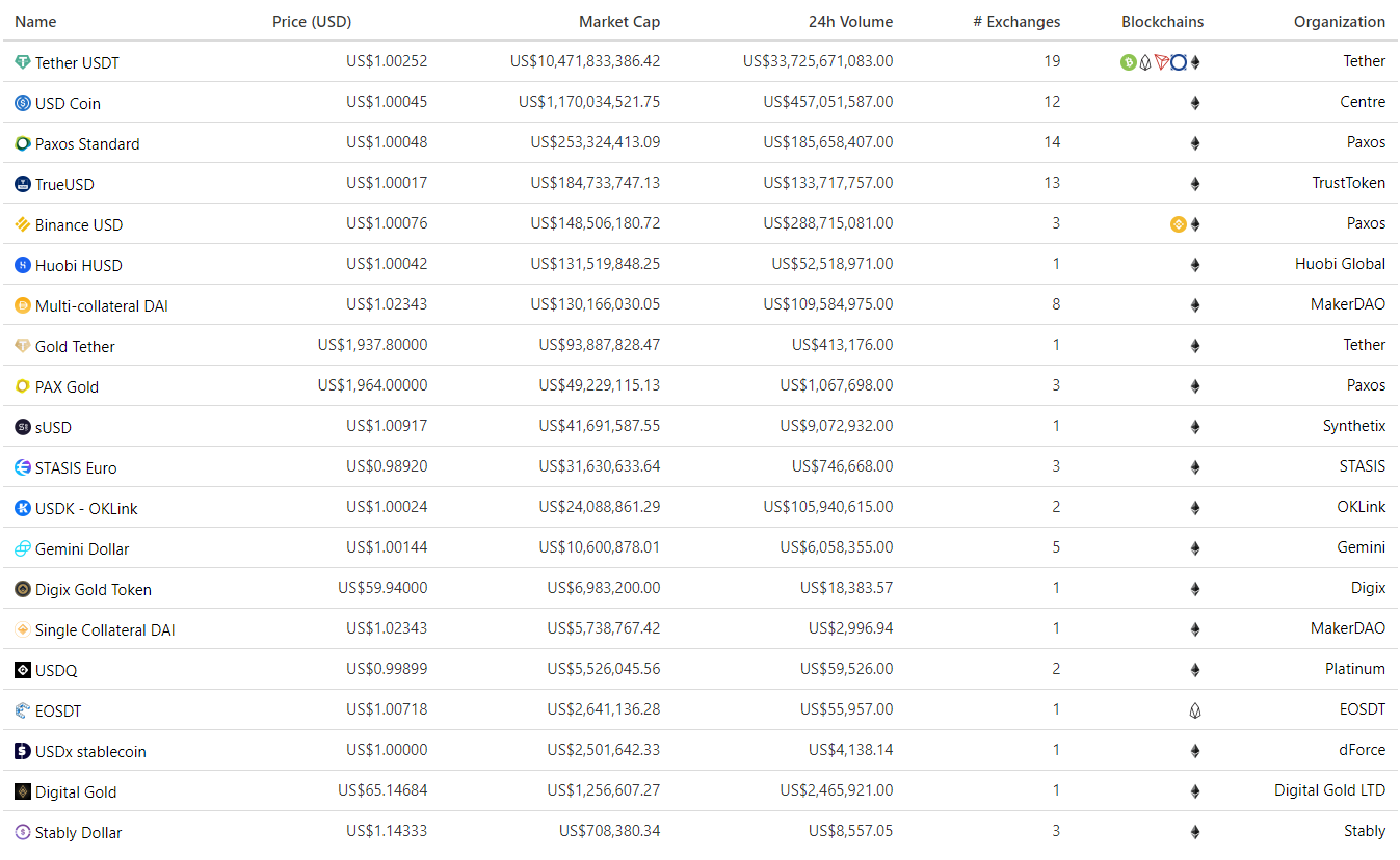 현재 스테이블코인의 대장은 누가 뭐래도 얼마 전 시총 100억 달러를 돌파한 USDT라고 할 수 있고, 그 다음은 출시 21개월만에 초고속 성장을 통해 시총 10억 달러를 돌파한 USD Coin입니다.