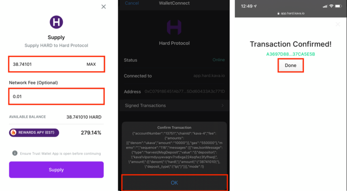 아래에서는 트러스트 월렛으로 HARD를 추가로 채굴하는 방법을 설명합니다.