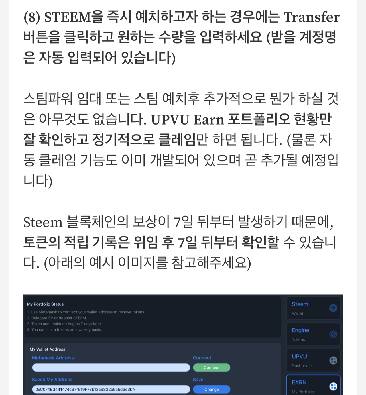 ➡️ ✅ 업뷰 언은 글쓰기 및 보팅과는 관련이 없습니다. 스팀파워를 임대하거나 STEEM을 전송하고 ETH를 모으고자 하는 메타마스크 지갑만 등록하면 끝납니다. (임대자가 글을 쓸 필요가 없습니다)