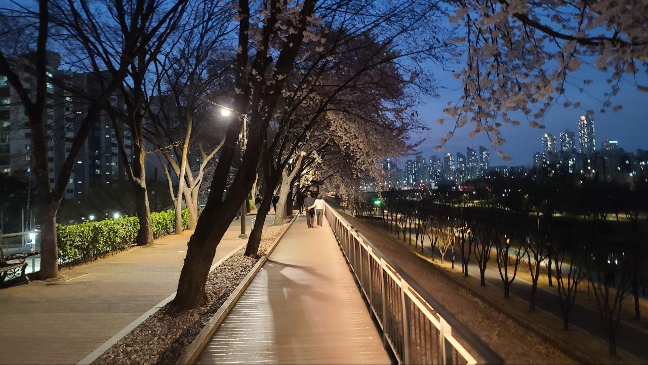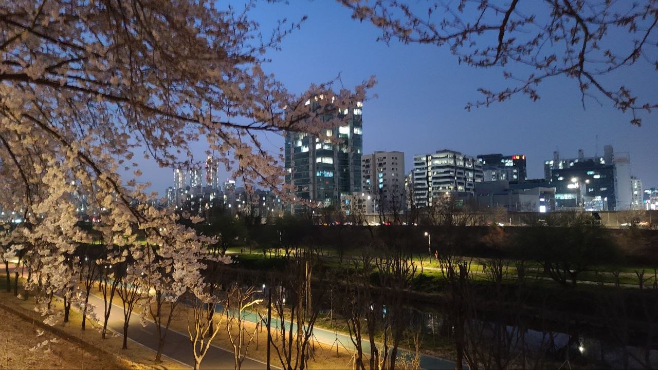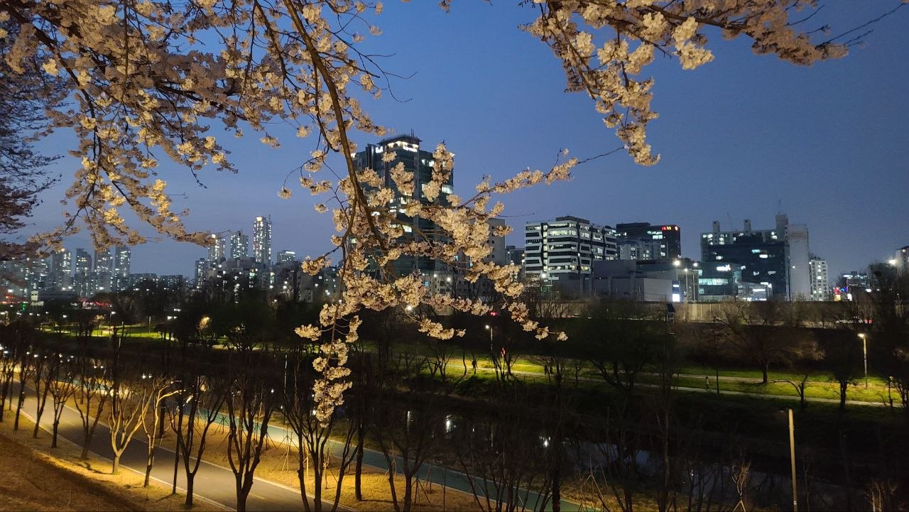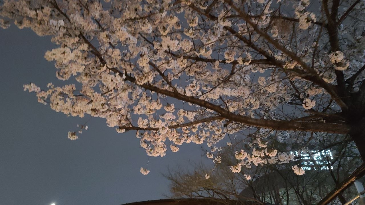 퇴근하고 도림천 제방길로 향했다. 점심 시간에 잠깐 보았던 벚꽃을 또 다시 보기 위해서였다. 밤에 보는 벚꽃은 낮에 보던 것과는 또 다른 재미가 있다. 작년에 그걸 경험했으며, 올해에도 다시 보고 싶었다. 벚꽃을 보며 즐거운 퇴근 시간을 보냈다. 이렇게 좋은 시간을 보낼 수 있어 감사했다.