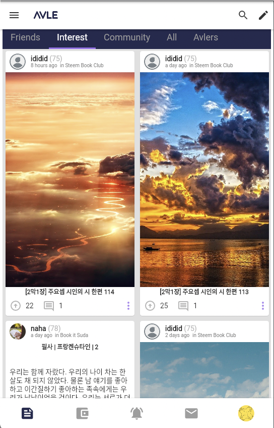 AVLE 댑의 기본 기능이 어느 정도 개발이 완료되어 가고 있습니다. AVLE은 기존 Play Steem과 다르게 처음부터 완전 새롭게 개발되었습니다. 그 이유는 Flutter로 개발된 Steem 앱이 없었기 때문입니다. 그만큼 새로운 기능들이 많이 추가되었습니다. AVLE에서 새롭게 시도되는 내용을 요약해 봅니다.