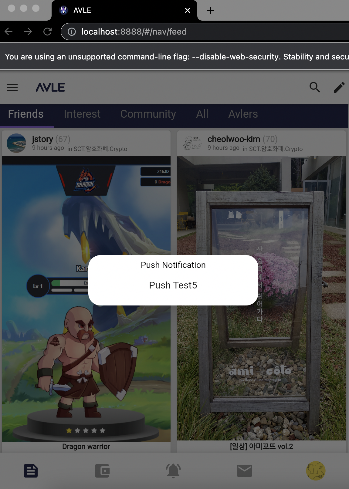 AVLE은 웹기반 앱이지만 push notifications을 받을 수 있도록 구현됐습니다.