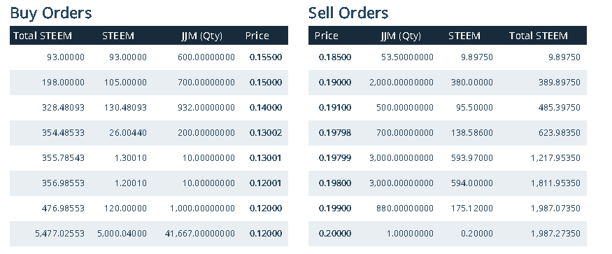 앞서 1 JJM을 0.12 STEEM에 판매할 때 51,100 JJM을 6132 STEEM에 구매하고 스테이킹시 18% 보팅을 받을 수 있는데...