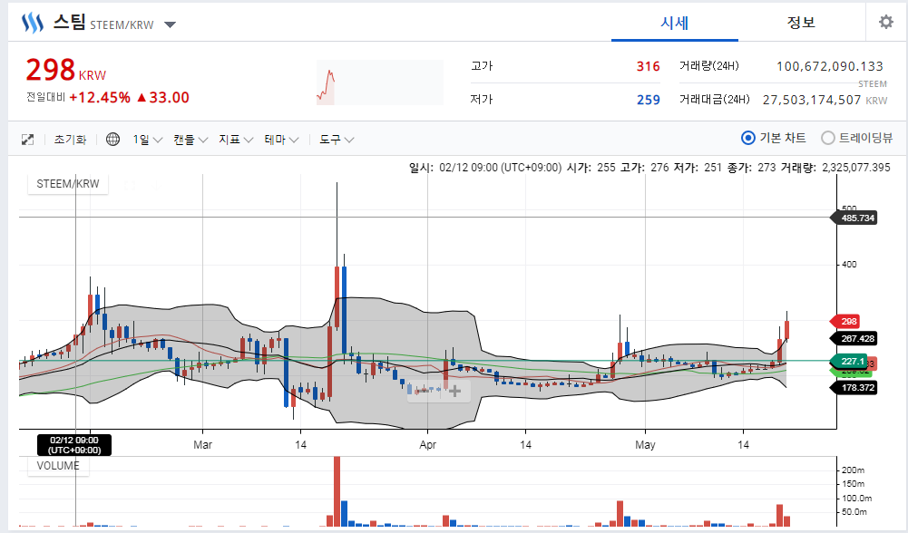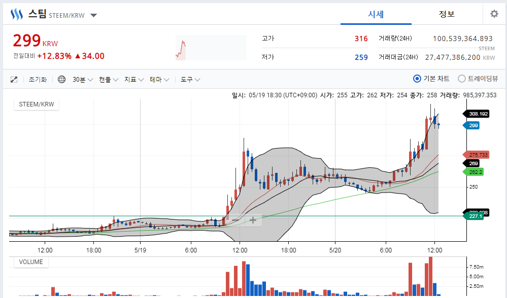 오늘 스팀 시세하면 말할 것도 없이 아름답지요. 거래량도 동반하여 열심히 올라주니 아주 기대되는 상황입니다. 이 가격이 끝은 아니겠지요.